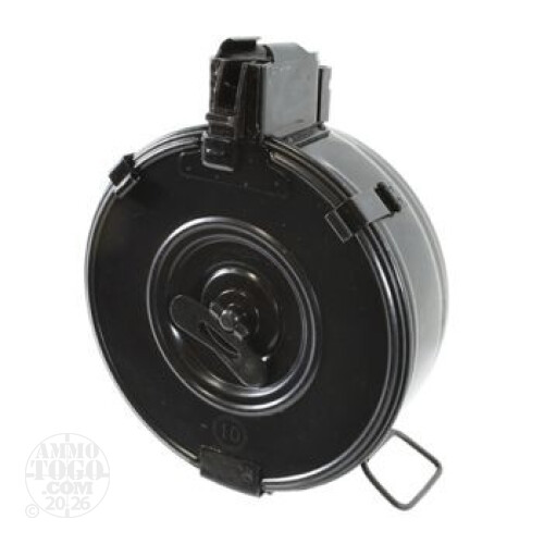 This is a New Bulgarian Military AK-47 75rd. Drum. This drum is patterned after the Chinese style drum. These are new production Bulgarian Military drums. They are manufactured by a Bulgarian Military Arsenal (noted by their arsenal "Circle 10" markings). This drum can be opened and loaded from the back. It can be left loaded for storage with no tension on the spring. When you are ready to shoot, just wind it up and you're ready to go. This is a new sealed in grease military drum.