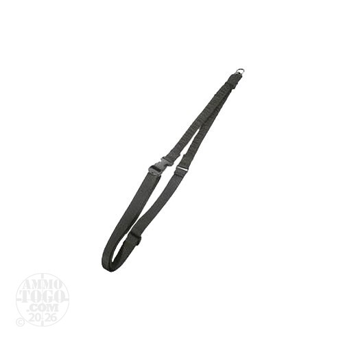 This is a Blackhawk Storm Single Point Sling XT. This single-point sling is constructed of high-quality 1.25" nylon webbing and has a elliptical bungee that provides comfort and support. Features include removable, elastic-encased MASH clip for quick attachment, heavy duty tri-glide buckle and a dual 300lb. test side release buckle. This single point sling will adjust from 46" to 64" in diameter to fit most body sizes. Ambidextrous design and fits shotguns and rifles.