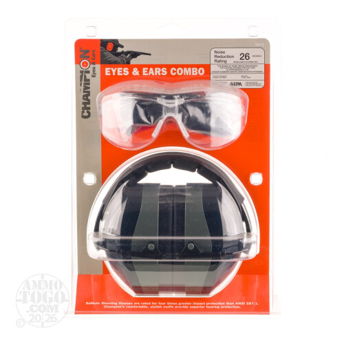 Don’t come to your senses. Preserve the senses you already have with the help of Champion! Their Eyes & Ears Combo includes one set of safety glasses and one pair of earmuffs, so you’ll be able to see and hear just as well after your trip to the range as you could before it.Champion’s safety glasses are comfortable enough to wear all day thanks to their slip-resistant temples and molded nose piece. These rugged clear plastic glasses satisfy military standard MIL-PRF-31013, 3.5.1.1 – that means they provide four times the protection required by OSHA’s ANSI Z87.1 safety standard. If a shard of copper or lead shrapnel decides to whiz back at your eyeball, it’s not going to send you packing to the emergency room.