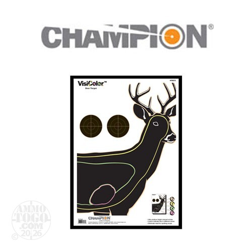 This is a Champion VisiColor Deer Target 10 Pack. VisiColor high-visibility targets offer shooters an interactive, fun way to sight in and practice. Based on Champion’s proven VisiShot technology, VisiColor provides multi-colored impact halos for easy identification of specific hit locations. These targets come packaged 10 targets to a pack.