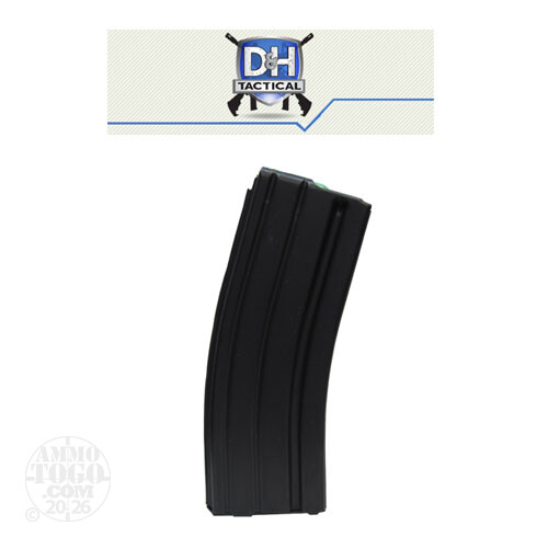 This magazine is manufactured by D&H Industries, a leading supplier of magazines for the M-16/AR-15 family of firearms. D&H mags are used by US and Allied militaries and law enforcement agencies around the globe. Each magazine holds 30 rounds of 5.56 NATO/.223 Remington ammunition and is made from quality components including sturdy 6061-T6 aluminum, mil-spec green followers, and 17-7PH stainless steel springs. The magazine body is finished in black with a friction reducing Teflon coating.-