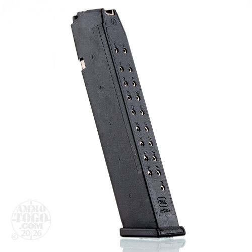 This is a Factory New Glock 22 .40 S&W 22rd. Magazine. Glock magazines have a stiff metal tube encased in the proven Glock high tech polymer. This resists deformation - even when dropped from great height or exposed to extreme environment conditions. This high capacity magazine is for the .40 Glock pistol. For quality and reliability you can count on, use factory Glock magazines.
