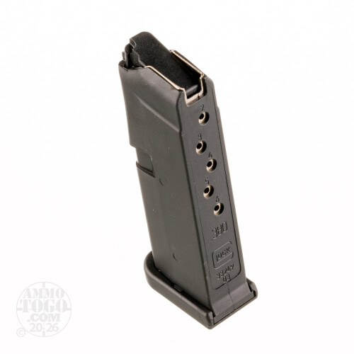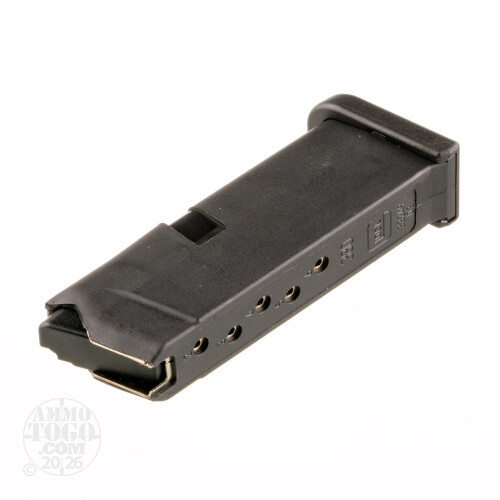 This is a Factory New Glock 42 .380 ACP 6rd. Magazine. Glock magazines have a stiff metal tube encased in the proven Glock high tech polymer. This resists deformation - even when dropped from great height or exposed to extreme environment conditions. For quality and reliability you can count on, use factory Glock magazines. This magazine holds a maximum of 6rds of .380 ACP.