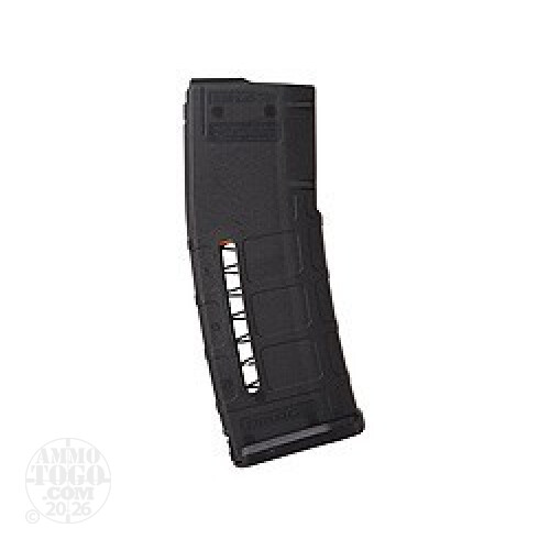 This is the Magpul PMAG 30 Maglevel Black 30 Rd. AR15/M16 Magazine with window. The PMAG 30 5.56x45 NATO AR15/M16 compatible magazine is made from a lightweight advanced impact resistant polymer. The PMAG 30 has a corrosion resistant stainless steel spring, and an anti-tilt, self lubricating follower for improved reliability. This new version has new body ribbing design which improves compatibility with aftermarket magazine couplers, a new follower for smoother loading with stripper clips, and an Impact/Dust cover that snaps on the floorplate to prevent loss. This magazine is made in the U.S.A.