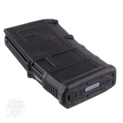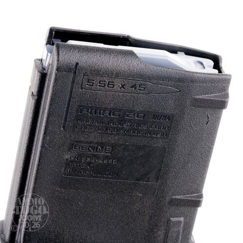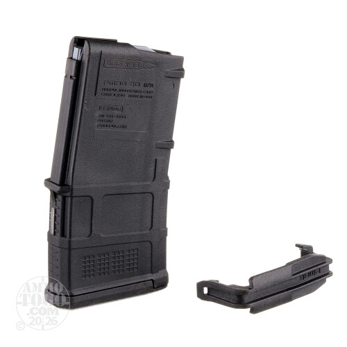 This is the Magpul PMAG 20 Gen M3 Black 20 Rd. AR15/M16 Magazine. The next-generation PMAG 20 GEN M3 is a 20-round 5.56x45 NATO (.223 Remington) polymer magazine for AR15/M4 compatible weapons. Along with expanded feature set and compatibility, the GEN M3 incorporates new material technology and manufacturing processes for enhanced strength, durability, and reliability to exceed rigorous military performance specifications. Modified internal and external geometry also permits operation with a wide range of non Colt-spec platforms such as the HK 416 and MR556A1, M27 IAR, British SA-80, FN SCAR MK 16/16S, and others. A redesigned bolt catch notch in the rear of the magazine provides increased bolt catch clearance, while an over-travel stop on the spine helps ensure the magazine will not over-insert on compatible weapons. The PMAG 20 GEN M3 features a long-life USGI-spec stainless steel spring for commonality, four-way anti-tilt follower and constant-curve internal geometry for reliable feeding, and simple tool-less disassembly to ease cleaning. In addition, an included pop-off Impact/Dust Cover can optionally be used to minimize debris intrusion and protect against potential damage during storage and transit. Low profile ribs and new aggressive front and rear texture gives positive control of the GEN M3 in all environments, and a paint pen dot matrix has been added to the bottom panel of the body to allow easy marking by the end user for identification. The new, easy to disassemble flared floorplate aids extraction and handling of the magazine while providing improved drop protection, but is slightly slimmer than before for better compatibility with tight double and triple magazine pouches. This magazine is made in the U.S.A.