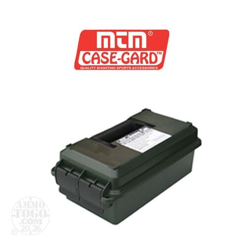 This is MTM 30 Cal Size Ammo Can - Green. MTM ammo cans are a great way to store bulk or boxed ammo. Its all plastic design is lighter in weight than the 30 caliber US Military Surplus Ammo Cans. Transferring ammo to and from the range just became a little easier! Ideal for bulk 45 ammo. Molded out of rugged polypropylene plastic, these comfortably handled ammo cans will hold up to some pretty harsh treatment. Utilizing MTM's tongue and groove O-Ring seal system for a superior water-resistant seal, the 30 caliber can is designed to fit the same amount of bulk ammo as the originals. A heavy-duty dual latching system makes for a better seal and less likely to open accidentally. Double padlock tabs along with molded-in stacking ridges, make these solid containers the perfect solution to so many storage needs.