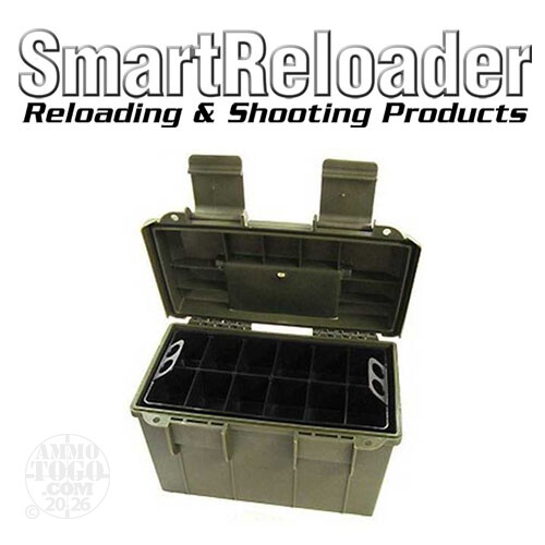 This is a SmartReloader #50 Modular Ammo Box w/ Modular Storage Trays OD Green. Our new Modular Ammo Box #50 matches exactly the .50BMG military ammo can's sizes but it is made of heavy duty plastic which improves the storage of your ammunition! You can feel free to even store the ammunition loose into the box, loaded magazines, the hard plastic walls will resist everything! And the box will carry over 70lbs. The whole structure of the can is made of Heavy Duty High-Density Polyethylene which is resistant to solvents and chemicals. Why the Ammo Can #50 is modular? Simply because we give you included for FREE three modular trays which will make your life much easier when you will need to store any kind of part into your Ammo Can #50. The inner walls of the trays can be removed according to your needs to make smaller or larger the storing spaces. And you will be able to do it on 3 different levels inside the Ammo Can #50! The Ammo Can #50 is a 100% dry box and can be locked on two sides to transport by air your ammunition or simply if you want to keep private what you are storing at home.