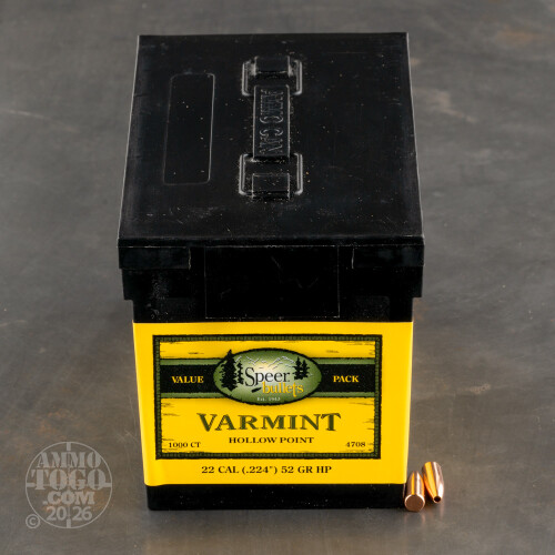 1000pcs - 22 Cal .224" Dia Speer Varmint 52gr. HP Bullets