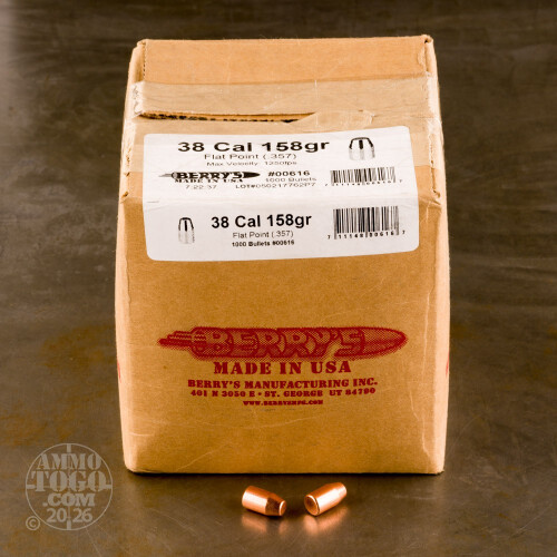 1000pcs - 38 / 357 Cal .357" Dia Berry's 158gr. Plated FP Bullets