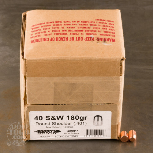 1000pcs - 40 S&W / 10mm .401" Dia Berry's 180gr. Plated Round Shoulder FP Bullets
