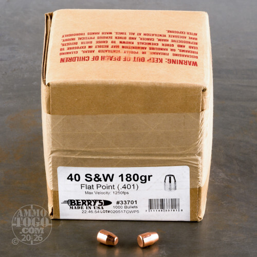 Why Shooters and Hunters love or hate 1000pcs - 40 S&W .401" Dia Berry's 180gr. Plated FP Bullets