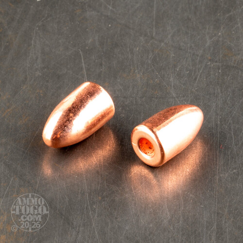 Berry's has developed these thick-plated bullets for reloaders who demand increased durability for high velocities and +P load recipes! The resilient copper plating is applied via an electrolysis process and does not compromise the .356 inch diameter of these bullets but does allow for speeds up to 1,500 feet-per-second. Unlike other plated bullets, this opens up the opportunity to replicate high pressure defense cartridges for range training or to make power factor in competitive use. This 124 grain bullet design also features a round nose for reliable feeding and a hollow base with no exposed lead portions