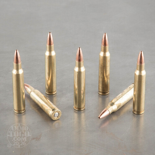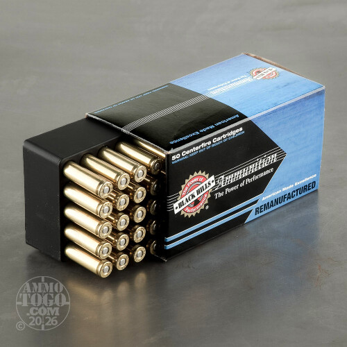 Each round produces a muzzle velocity of 3750 feet per second and a muzzle energy of 1124 foot pounds. This remanufactured ammo is boxer primed and loaded into brass cases that have been previously fired.