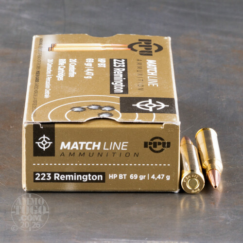 A perfect option for the high-volume or budget-conscious shooter looking for tighter accuracy than normal ball ammo, this package contains a full 1000 rounds of Prvi Partizan .223 Remington ammunition. Each cartridge is loaded with a 69 grain match grade boat tail hollow point projectile. Providing excellent long-range accuracy, these versatile loads are great for match grade shooting, small game and varmint hunting, or casual target shooting.