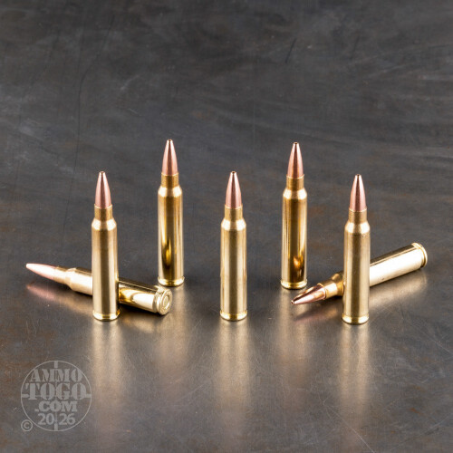 This ammunition is new production, non corrosive, reloadable, and features high-quality brass cases and boxer primers. Each round produces a consistent muzzle velocity of 2855 feet per second with 1249 foot pounds of muzzle energy.