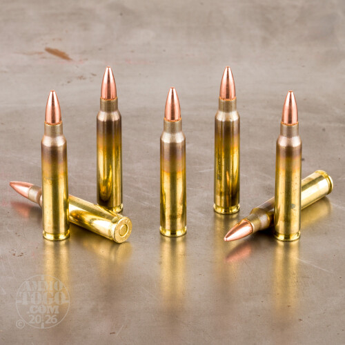 See how these rounds’ cases are discolored? They are in fact brand new and reloadable. They just weren’t shined up after they received strengthening heat treatment. Non-corrosive Boxer primers and clean-burning powder keep residue accumulation at a minimum. Bulk packaging means you only have to open one box to access all of your ammo!