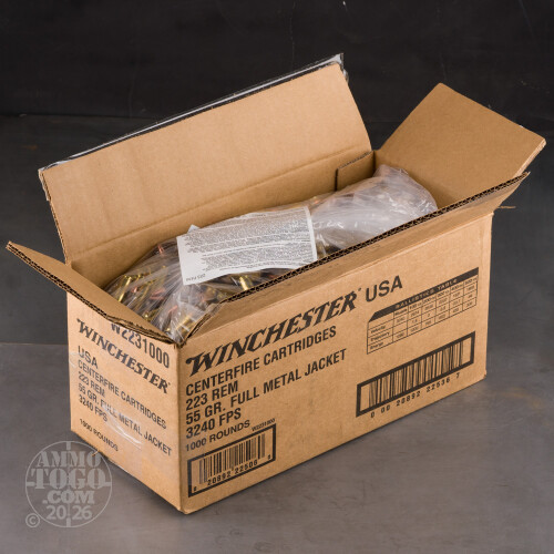 1000rds – 223 Rem Winchester USA 55gr. FMJ Ammo