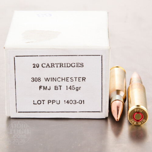 1000rds - .308 Prvi Partizan 145gr. FMJ Ammo Details