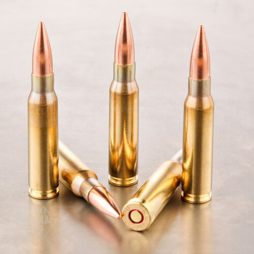 This ammunition is factory fresh and features non-corrosive boxer primers and reloadable brass casings. Each round has a sealed primer for long-term storage and an annealed case neck. Leaving the muzzle at a velocity of 2837 feet per second, these rounds produce 2596 foot pounds of muzzle energy.