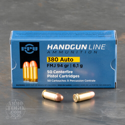 1000rds – 380 Auto Prvi Partizan 94gr. FMJ Ammo Details