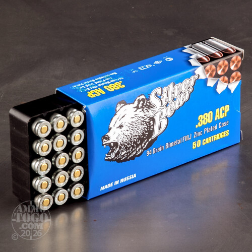 1000rds - 380 Auto Silver Bear 94gr. FMJ Ammo Details