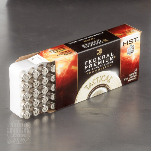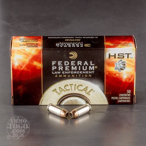 Federal HST ammo features skived-tip jacketed hollow point bullets designed to stop attackers quicky and decisively through rapid expansion and strong penetration. This 1,000 round case of .40 S&W HST ammo is a good choice for training use, as it offers bulk savings while delivering realistic performance that many range loads cannot match. Compared to other .40 Smith & Wesson loads, these cartridges fire a light 155 grain bullet at a relatively high muzzle velocity for improved expansion. They are made in the USA and use non-corrosive primers and nickel-plated brass cases.-
