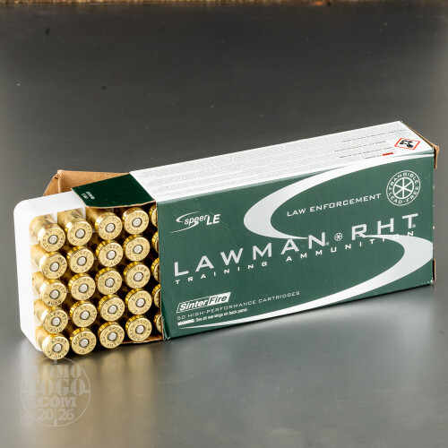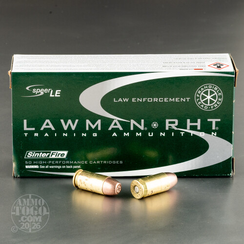 Speer offers their Lawman line of ammunition to law enforcement officers who are set on keeping their skills sharp. It is an excellent selection for private citizens who wish to do the same. This particular 45 ACP training ammo delivers similar recoil, point of aim, and ballistic performance to comparable duty loads, making the time you invest with it truly productive. But it is also designed to keep you safer as you train.This cartridge features a 155 grain Reduced Hazard Training projectile. It is frangible, composed of 100 percent sintered copper powder that remains intact up until the moment of impact. When the RHT hits a hard surface such as a steel target or rock, it presents almost zero chance of ricocheting little fragments of solid copper and lead back at the shooter. The same can not be said of conventional FMJ bullets.