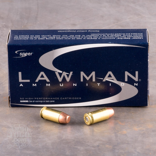 This 45 ACP cartridge from Speer’s Lawman line of ammunition delivers performance so approximate to that of your self-defense load that you’ll swear you’re training with the real thing. This round features a 200 grain total metal jacket profile. Because its core is perfectly encapsulated within its jacket, this bullet will not create lead vapor when hot propellant gasses lick at its base. The effect is a far healthier shooting environment, which is of particular importance if you train indoors. This round further offers a clean burning propellant that creates consistent chamber pressures, as well a non-corrosive CCI primer which assures you’ll never be frustrated by a dud.This round’s bullet has a flattened nose, which not only helps it to feed more smoothly in a semi-automatic, but also punches a clean hole through a paper target so that you can receive effective feedback on your performance. Its new production brass casing is fit for reloading as well, so make sure you catch whatever your chamber ejects!