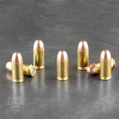 Each of these factory fresh cartridges is loaded with a 230 grain Speer total metal jacket (TMJ) projectile. The one-piece jacket of these TMJ bullets completely and seamlessly encases the lead core. This design limits expansion and prevents powder gases from burning off at the bullet’s base. The result is cleaner shooters, cleaner weapons, and cleaner ranges. These TMJ bullets leave the muzzle at a velocity of 830 feet per second and produce 352 foot pounds of muzzle energy.