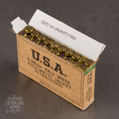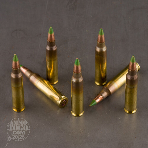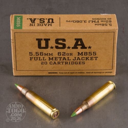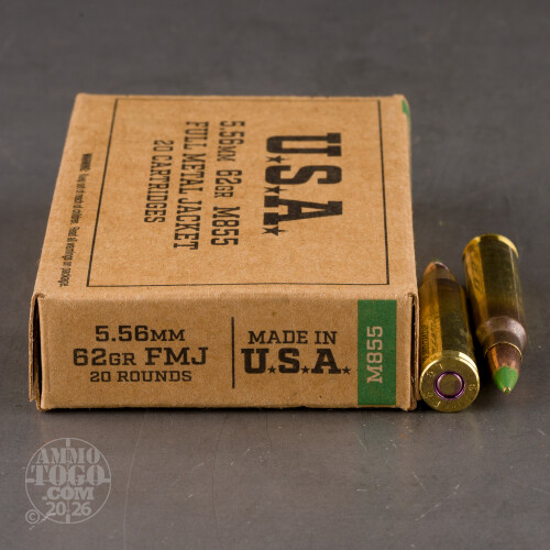 Don’t spend one second of your life without instant access to 5.56x45 M855 ammunition. Count on Winchester to supply precisely the stuff you need to train your aim and dump out mags all day, every day!This ammo is loaded with 62 grain full metal jacket “penetrator” projectiles. Each bullet’s copper jacket surrounds a two-piece core: steel in the front, lead in the back. Its steel tip fortifies the bullet so it can more reliably pass through sheet metal and other barriers. Its slightly heavier weight may lower the bullet’s muzzle velocity, but it pays off in the form of increased momentum and greater resistance to wind drift as a result.