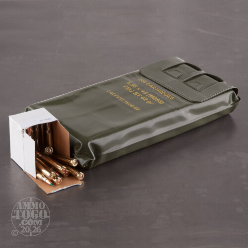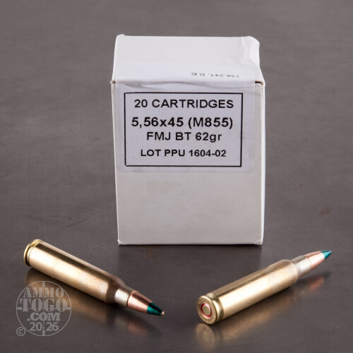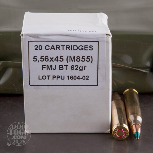 This is current Production Prvi Partizan Military 5.56x45 NATO 62gr. M855 FMJ Ammo In Sealed Battle Pack. This ammo is brass cased, boxer primed and 100% non-corrosive. The primer and case neck is sealed for moisture protection to military specs and the case neck is also annealed to military specs. This is some fabulous ammo and is the same ammo that is sold to military around the world, by Prvi Partizan. The battlepack is made of a tough pvc plastic and is completely sealed for moisture protection. The battlepack also has a convenient built on carry handle for easy transportation of the ammo. There are 200rds. per sealed battle pack.