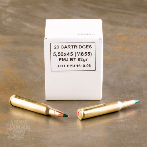 This is 5.56 Prvi Partizan M855 62gr Penetrator Ammo . This ammo is manufactured to US Military M855 Spec. This ammo is brass cased, boxer primed, and non corrosive. This ammo comes in 20rd boxes, 1000rds. per case.