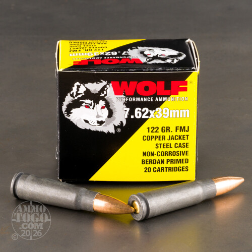 1000rds – 7.62x39 Wolf Copper Jacket 122gr. FMJ Ammo Details