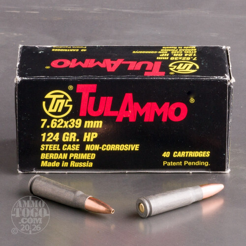 1000rds - 7.62x39mm Tula 124gr. HP Ammo Details