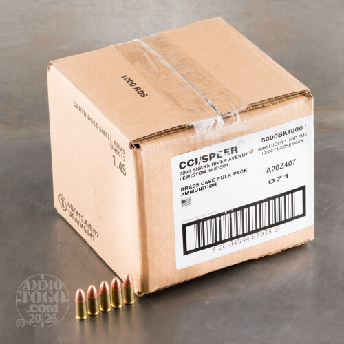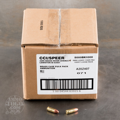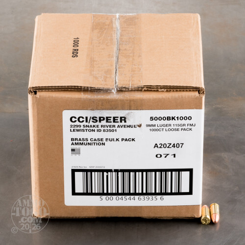 This 9mm CCI Blazer Brass ammo is the brass cased quality ammunition. Each round comes with a new-production brass casing that is Boxer-primed and non-corrosive. These cartridges are loaded with dependable CCI primers and clean burning powders. CCI tops each cartridge with a 115gr. full metal jacket (FMJ) projectile that vacates the muzzle at approximately 1145 fps.American shooters have trusted CCI's Blazer line of ammo since its release in 1981. By adding a brass option, CCI has trumped up the value of their popular Blazer ammo with the ability to reload their factory-fresh casings. This ammo is available in 1000-round loose pack cases.