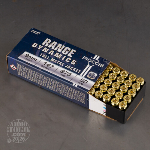 This is 9mm Fiocchi 147gr Full Metal Jacket ammo. This ammo is brass cased, boxer primed and non-corrosive. The 147gr FMJ bullet has a round nose and is non-magnetic. This ammo is packed 50rds. per box and 1,000rds. per case. Rated Muzzle Velocity :1000 fps