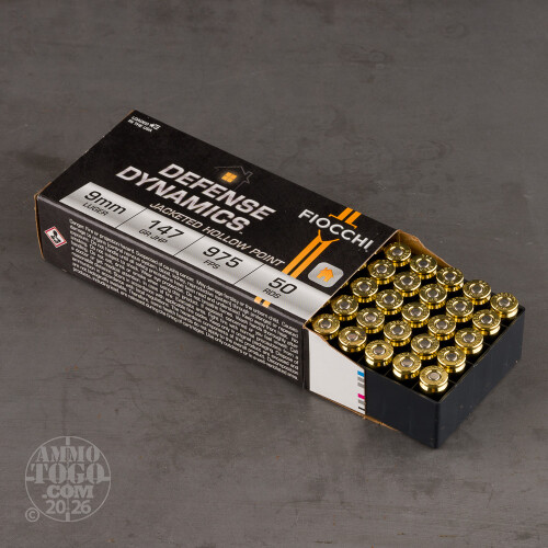 These 9x19mm Luger rounds from Fiocchi are an economical choice for personal defense use. Fiocchi Munizioni is an Italian manufacturer with roots reaching back as far as 1876. Their experience with ammunition production through many world conflicts as well as their current-day connections to competitive shooters and law enforcement has bestowed them with unmatched proficiency and expertise in the field.Each cartridge is assembled using a reloadable brass casing fitted with a non-corrosive Boxer primer. These particular 9mm rounds use 147 grain jacketed hollow-point (JHP) projectiles; 147 grains is a heavy bullet weight for the caliber and provides the best performance in terms of penetration, energy transfer, and smooth recoil impulse. Fiocchi's JHP design incorporates a deep cavity, wide mouth, and small folds of copper jacket into the lead core at the tip which all combine to produce massive, threat-stopping expansion upon impact.