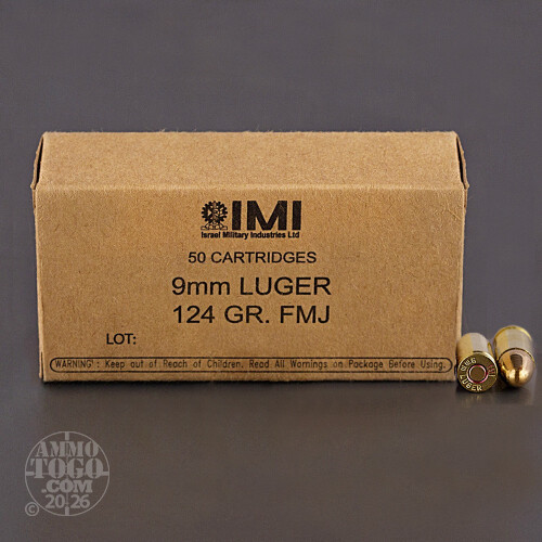IMI, which stands for Israel Military Industries, produces large quantities of several types of small-arms ammunition for the Israeli Government and other governments, including the U.S. IMI also produces other military munitions and equipment including body armor and mortar rounds.This 9mm Luger ammo has a 124 grain full metal jacket projectile, and will provide excellent range training with reliable performance and accuracy, shot after shot. This ammo packs a serious punch, and will function best in full size handguns, and will be a bit snappy in subcompact and micro handguns. It will also function well in sub-machine guns like the Uzi. Each round has a brass case and is reloadable. Buying in bulk, like this 1000 round case, will also save you money per round. Order your ammo before its all gone!