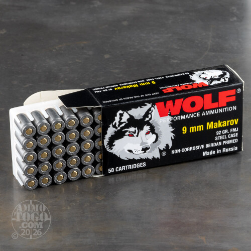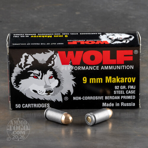 1000rds – 9mm Makarov Wolf 92gr. FMJ Ammo Details