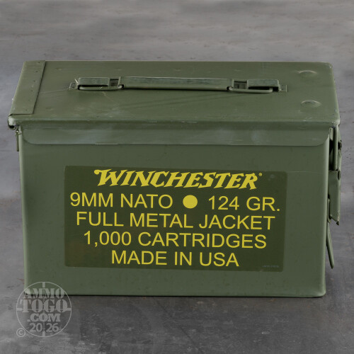 1000rds – 9mm NATO Winchester USA 124gr. FMJ Ammo in Ammo Can Details