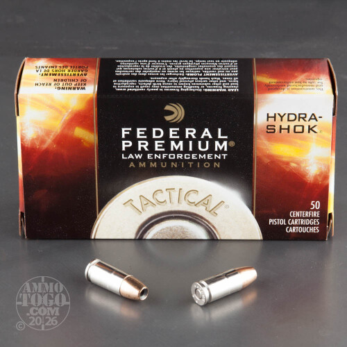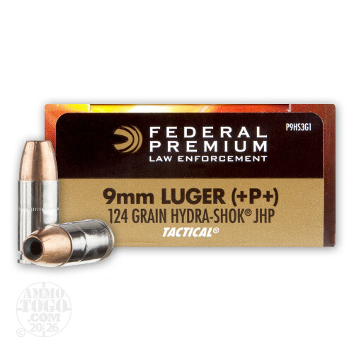 1000rds - 9mm +P+ Federal Law Enforcement Hydra-Shok 124gr. JHP Ammo Details