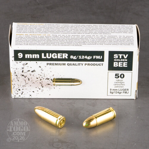 1000rds – 9mm STV Golden Bee 124gr. FMJ Ammo