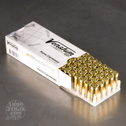 Even if you were 130 years old, we’d be very sorry to hear that you don’t expect to fire another 1,000 rounds of 9mm ammunition in your lifetime. (Hopefully they’ll still be able to wheel you down to the range at that age.) Here are the Venatum brand range loads you’ll be sure to need however occasionally you mow down some bullseyes!This round’s 115 grain bullet is the lightest you’re apt to find on a factory 9mm load. It ensures a fast 1,214 fps muzzle velocity out of a semi-auto, and also supplies enough chamber pressure to reliably cycle it. This round’s FMJ is good for punching holes through paper, plinking targets and not much else since it can’t expand inside soft tissue. But its core is made of lead, and its copper-alloy jacket is similarly nonmagnetic. Perfect for training at picky ranges!