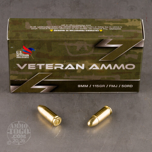 1000rds – 9mm Veteran Ammo 115gr. FMJ Ammo