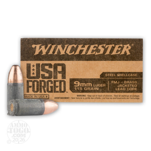 This 9mm USA Forged cartridge’s name says it all: made right here in the Land of the Free, and equipped with a steel casing to make it friendly to even the highest volume shooter’s budget. Winchester has ensured that this cartridge still feeds and extracts as reliably as a brass cased one does by applying a proprietary friction-reducing treatment to its casing. And will you be shooting in your backyard and don’t want the area littered with shell casings? Simply run a magnet around and the problem is solved!This round features a 115 grain projectile. That’s not heavy at all for its caliber, and accordingly generates less of the recoil that can make rapid fire less accurate. Winchester’s full metal jacket is applied evenly around this bullet’s lead core to even further promote accuracy, and it will prevent your bore from gumming up with lead residue. This round’s clean burning propellant is a boon to any firearm’s condition as well!