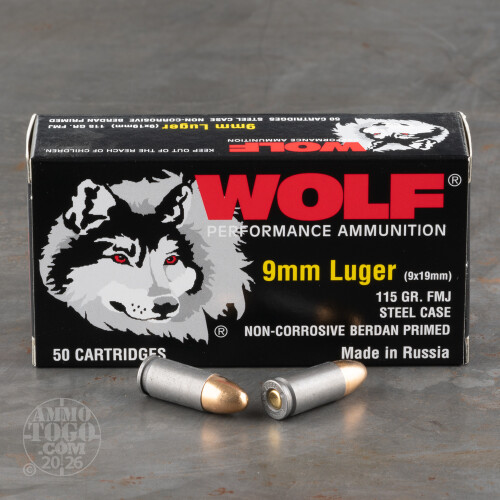 1000rds – 9mm Wolf 115gr. FMJ Ammo Details