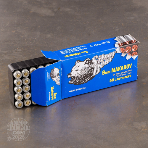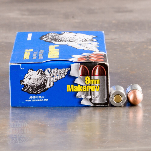 1000rds - 9x18 Makarov Silver Bear 94gr. FMJ Ammo Details