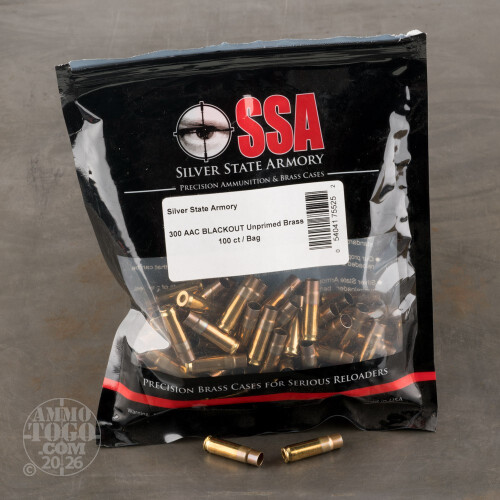 Silver State Armory (SSA) is a brand of ammunition and components by Nosler that is designed for flawless function in semi-automatic firearms. As such, these factory-new .300 Blackout casings feature uniform thickness, flash channels, and precisely measured primer pockets; these pockets are left empty to lower overall shipping costs and to give shooters ultimate choice of primer brand. This allows handloaders to craft their custom cartridges based on any published load data. Each SSA case starts life as a brass cup which is engineered to a specific metallurgical composition before undergoing several processes to form the correct shape and dimensions.Inspections occur before, during, and after these manufacturing steps for trustworthy quality control which will contribute to more accurate .300 AAC Blackout ammo. This 100 count pack of brass casings comes sealed within a plastic container for corrosion resistance in storage. The Nosler group of companies has been recognized for innovative projectile designs and custom hunting and precision ammunition since the late 1940s. Their brass casings are favored by reloaders for high strength and long life cycles.