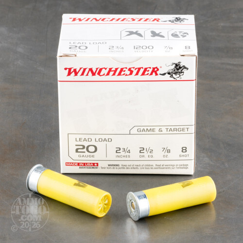 100rds – 20 Gauge Winchester USA Game & Target 2-3/4" 7/8 oz. #8 Shot Ammo