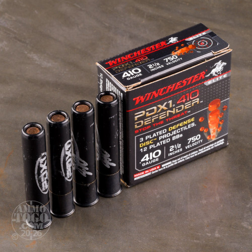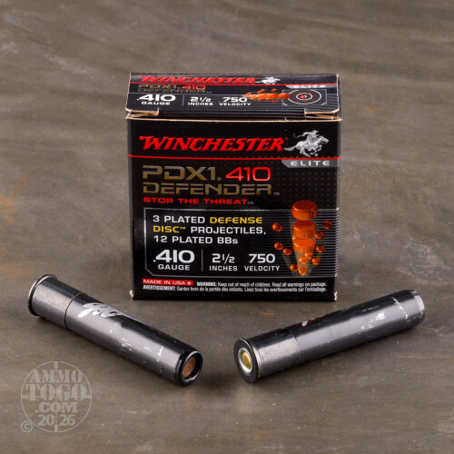 100rds – 410 Bore Winchester PDX1 Defender 2-1/2" 3 Plated Defense Disc & 12 Pellet BB Shot Ammo Details